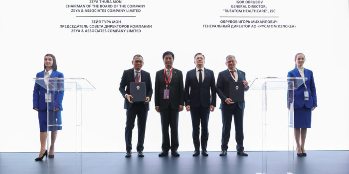 ПМЭФ 2023: Состоялась церемония подписания Меморандума о взаимопонимании между АО «Русатом Хэлскеа» (компания Госкорпорации «Росатом») и компанией Zeya & Associates Co., Ltd (Мьянма)